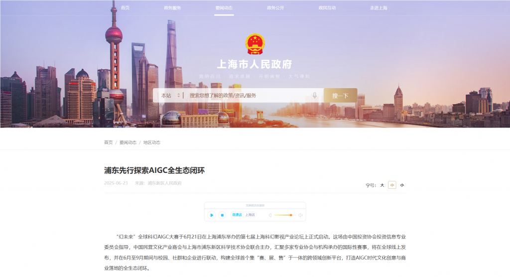 全球科幻AIGC大赛于6月21日在浦东举办的第七届上海科幻影视产业论坛上启动