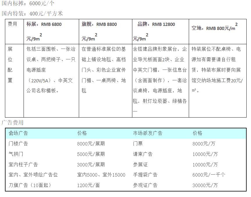 四、参展费用