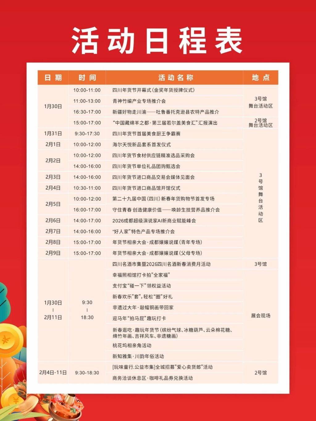 本届展会将于2026年1月在成都世纪城国际会展中心举行,同期在重庆设分会场,线上线下融合、一展双城举办。在新春贺岁季,打造集食、购、娱于一体,多场景布局、多业态融合、沉浸式消费的年味盛宴及全球年货购物盛会。